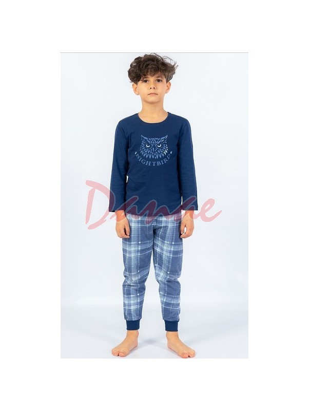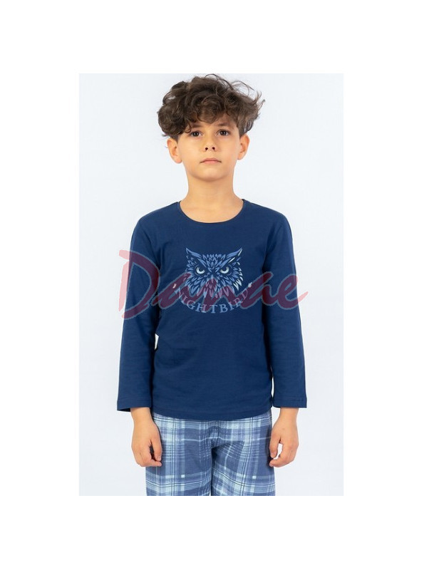 Tmavomodré tričko, s dlhým rukávom a okrúhlym výstrihom, na prednej strane potlač - hlava sovy a nápis: Nightbird.