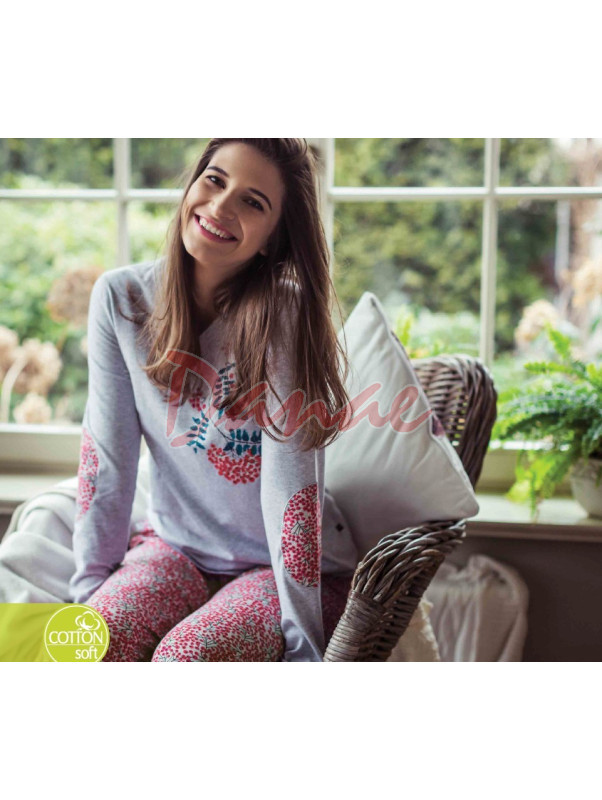 Tričko, s dlhým rukávom, je na prednej strane zdobené potlačou s jesenným motívom - strapce jarabiny, na lakťoch ozdobné záplaty. Výstrih je do véčka. Nohavice sú dlhé, úzkeho strihu, vzorované, s vreckami. Do kompletu v ponuke aj župan, s rovnakým motívom.