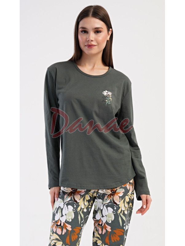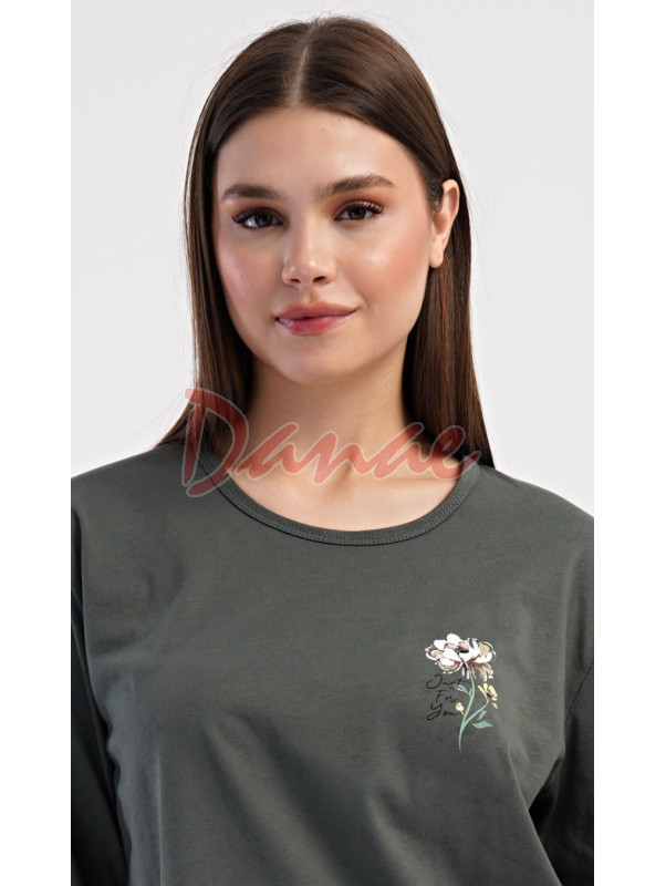 Dámske pyžamo dlhé Kvety zelená - až do 4XL
