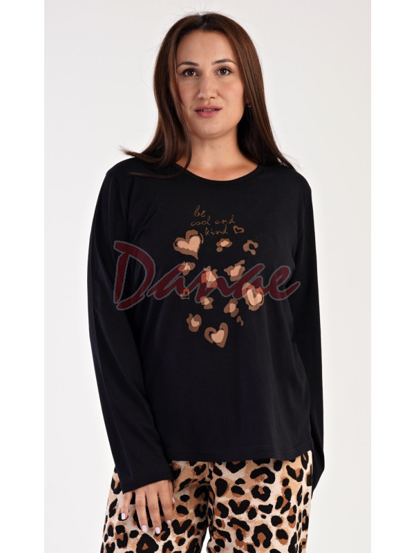 Jednofarebné tričko, s dlhým rukávom, okrúhly výstrih, na tričku zdobenie leopardím vzorom, nápis: Be cool and kind.