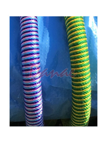 Tenký náramok, opletený šnúrkou z farebnej priadze.