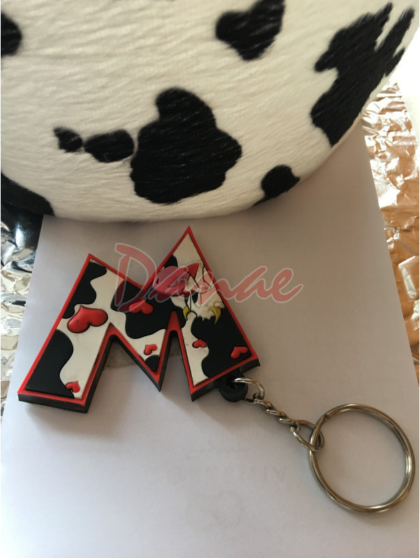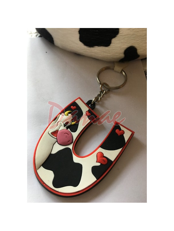 Prívesok na kľúče Letter - písmeno abecedy, so strakatou kravičkou. Veľkosť písmena 5,5-6 cm.