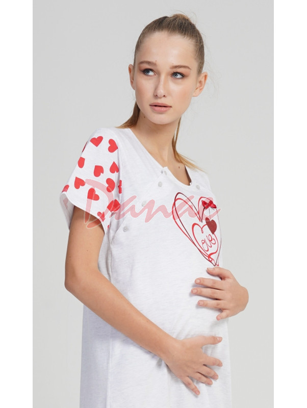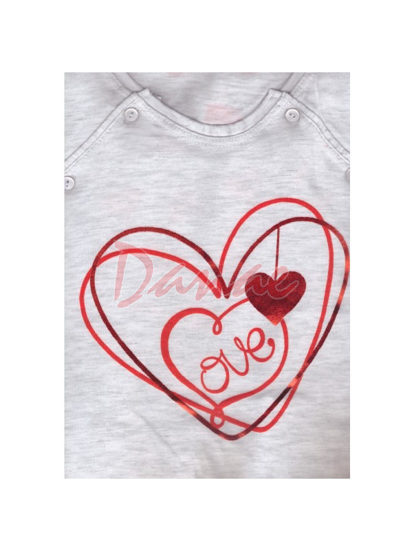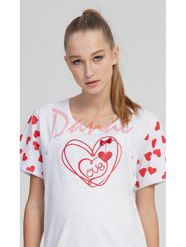 Obojstranne rozopínaná nočná košela, na gombíky, s krátkym rukávom. Medzi rozopínaním je veľké srdce, s nápisom: Love a malým srdiečkom. Srdiečka sú aj na rukávoch. Srdiečka sú z metalickej potlače - lesknú sa.