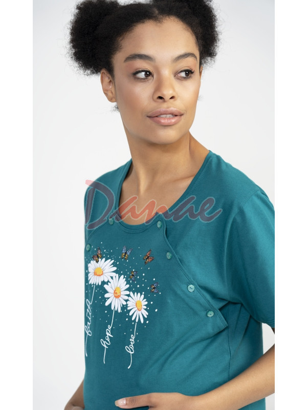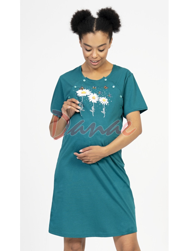 Nočná košeľa pre nastávajúce aj dojčiace mamičky - okrúhly výstrih, krátke rukávy, obojstranné rozopínanie na gombíky.
