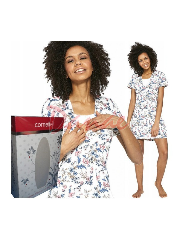 Model, pri ktorom bol kladený dôraz, aby sa tehotná a dojčiaca mamička cítila pohodlne. Použitý je prírodný bavlnený materiál, mimoriadne šetrný k pokožke a príjemný na dotyk. Osvedčený strih, zabezpečí voľnosť pohybu, praktický výstrih, uľahčí dojčenie dieťatka. Decentný kvetinový motív, balené v krabici Cornette.