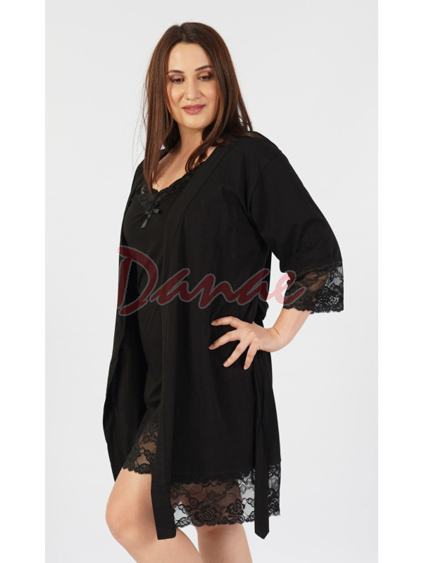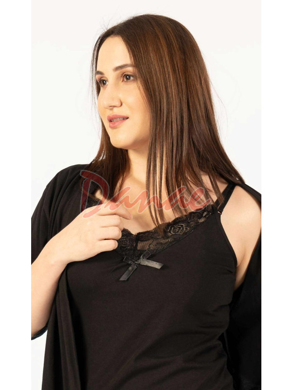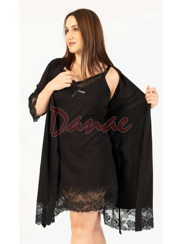 Nádherná dámska bavlnená súprava s krajkou - nočná košieľka na tenké ramienka a tenký župan.