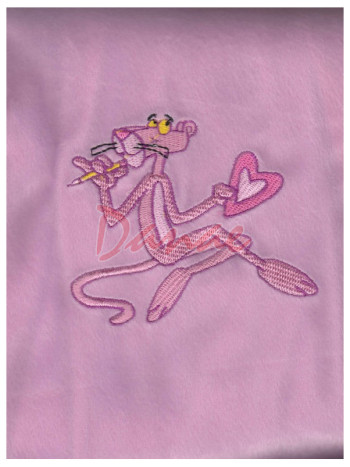 Taburetka - poťah na taburetku - Pink Panter. Poťah na taburetku, s vyšitým obrázkom Pink Panter. Priemer 50 cm, výška 25 cm. Štýlový a zároveň praktický doplnok do detskej izby.