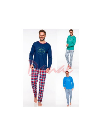 Sny sú zadarmo - pánske pyžamo dlhé. Tričko s dlhým rukávom, okrúhly výstrih, vpredu potlač: Hory. Nohavice dlhé, kárované. Do rodinného kompletu aj dámske a dievčenské pyžamá, s rovnakým motívom.