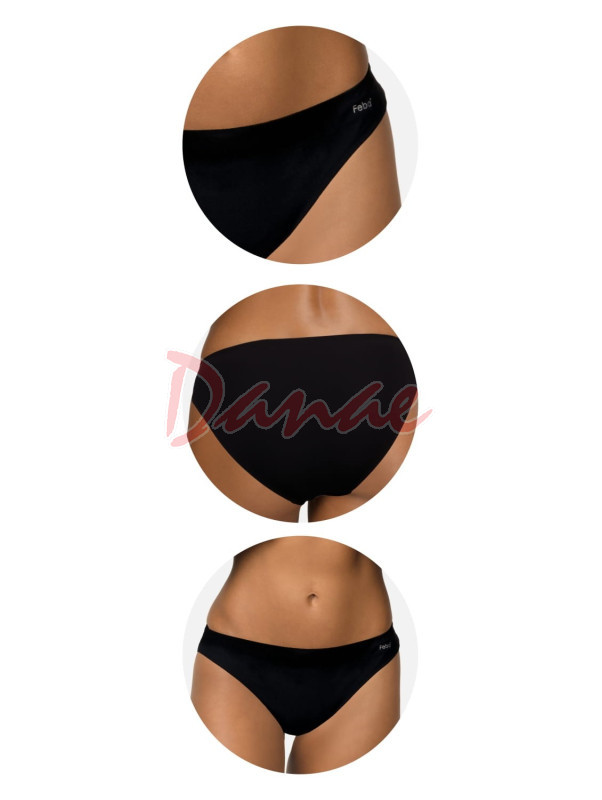 Samostatné plavkové nohavičky, čiernej farby, osvedčeného strihu, sa dokonale prispôsobia vašej postave. Vhodné ako monokiny, alebo na prezlečenie z mokrých plaviek.