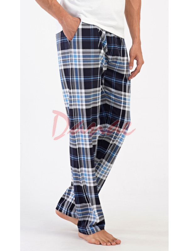 Pyžamové nohavice pre pánov, s obľúbeným károvaným vzorom. V páse je guma i šnúrka na uväzovanie, po bokoch vrecká.