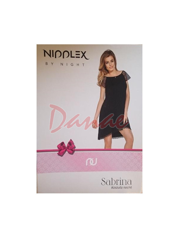 Dámska viskózová košielka Sabrina, s krajkou na rukávoch. Lodičkový výstrih, zdobený mašličkou s bižutériou, spodok košielky obšitý krajkou, na zadnej strane mierne predĺžený.